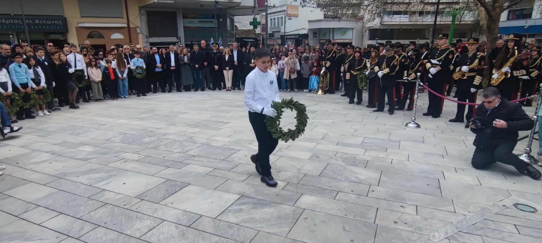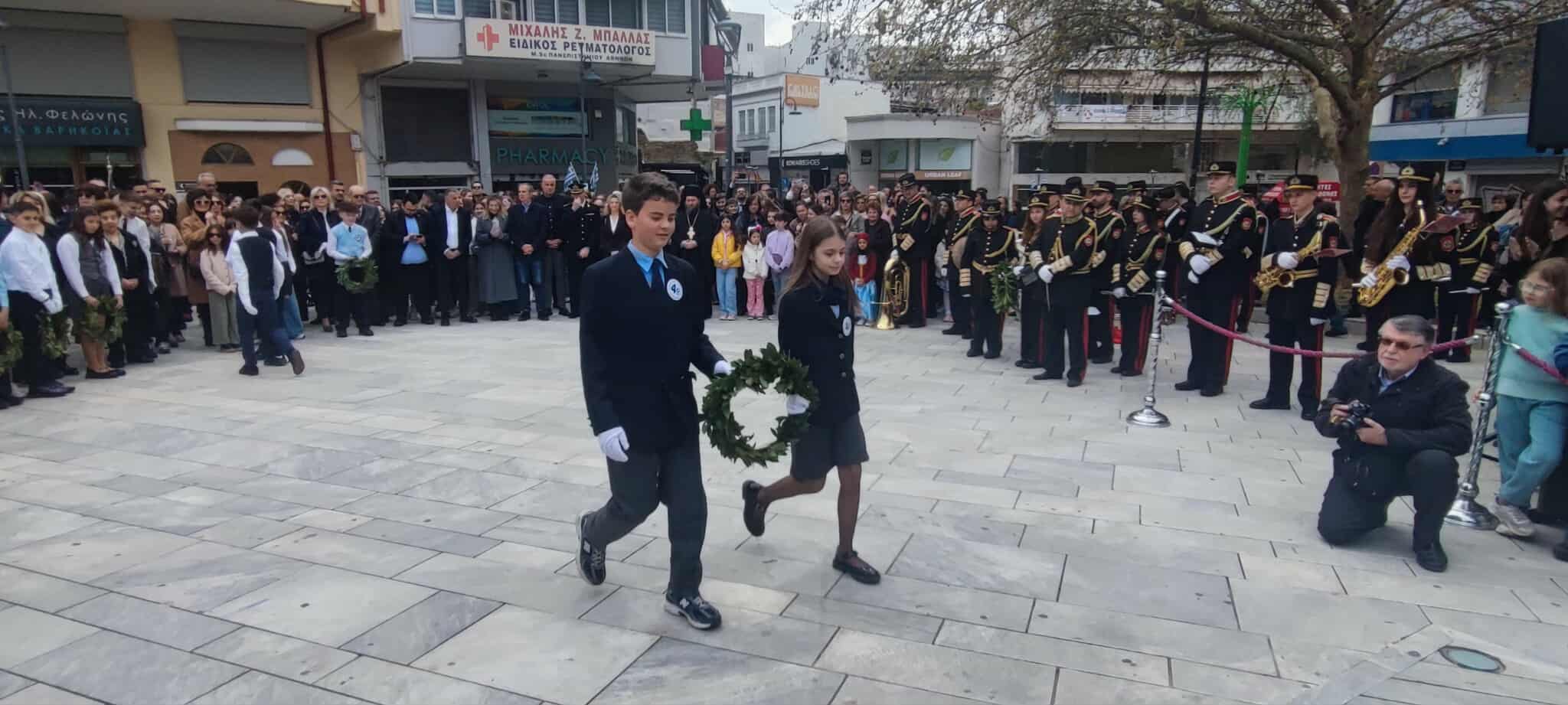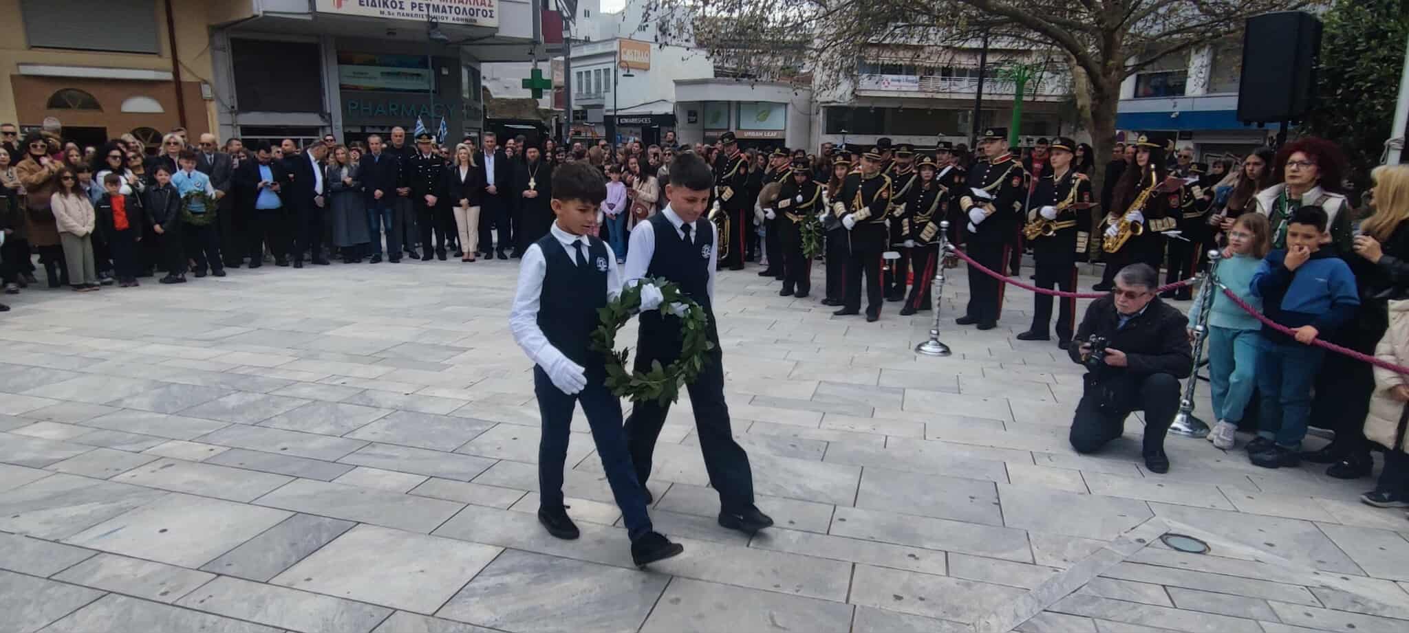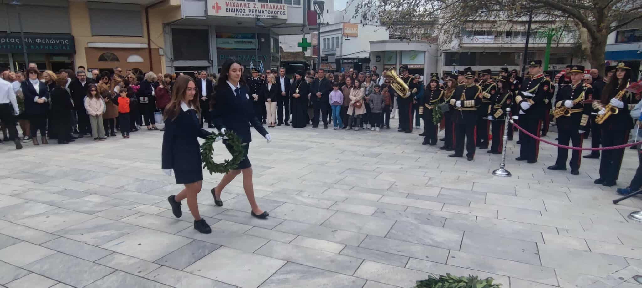 Ακολούθησε κατάθεση στεφάνων σε κλίμα συγκίνησης. Μαθητές και μαθήτριες όλων των βαθμίδων εκπαίδευσης, συνοδευόμενοι από τους εκπαιδευτικούς τους, προσήλθαν με ευπρέπεια και συγκίνηση στον χώρο του μνημείου, αποτίοντας φόρο τιμής σε όσους αγωνίστηκαν για την ελευθερία της πατρίδας.