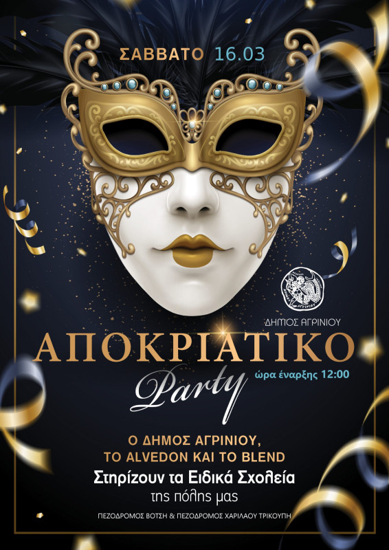 «Ντυθείτε κι ελάτε να διασκεδάσουμε, να χορέψουμε, να περάσουμε ωραία αλλά κυρίως για να στηρίξουμε τα Ειδικά Σχολεία της πόλης μας στο αποκριάτικο πάρτι που διοργανώνει ο Δήμος Αγρινίου στους Πεζόδρομους Χαριλάου Τρικούπη και Βότση», τονίζεται στην ανακοίνωση του Δήμου Αγρινίου.