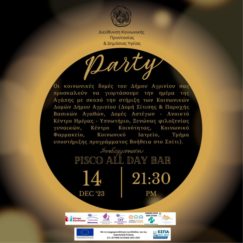 Το βράδυ της Πέμπτης, οι εργαζόμενοι στις Κοινωνικές Δομές, προσκαλούν στις 9.30 μ.μ. στο Pisco all day Bar σε party αγάπης για τους ωφελούμενους των Δομών.