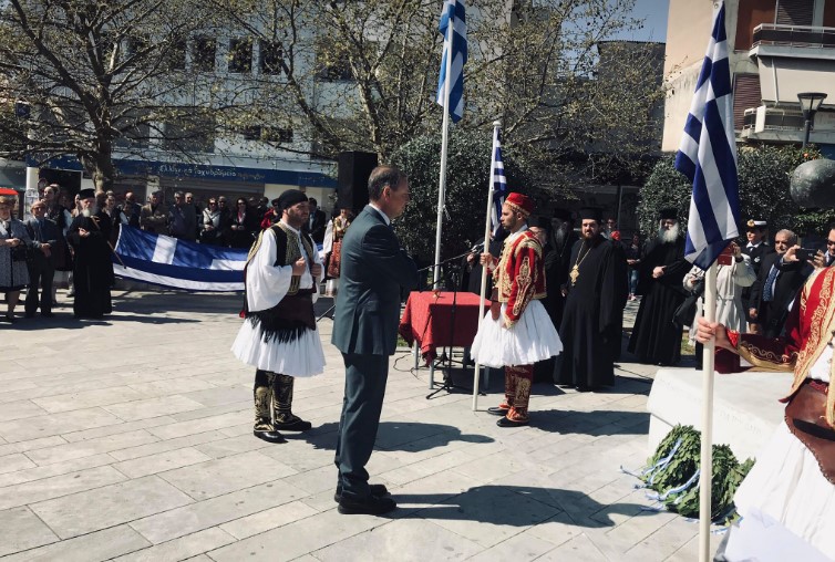 Αμέσως μετά την δοξολογία ακολούθησε επιμνημόσυνη δέηση και κατάθεση στεφάνων στο Μνημείο των Πεσόντων στην Πλατεία Μαρίας Δημάδη.