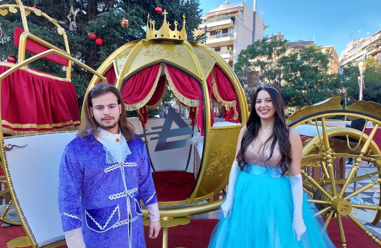 Στην Πλατεία Δημοκρατίας, δίπλα στο Xριστουγεννιάτικο Δένδρο, βρίσκεται από νωρίς το πρωί της Τρίτης, 27 Δεκεμβρίου 2022 η άμαξα της Σταχτοπούτας μαζί με έναν κουμπαρά για έναν σπουδαίο σκοπό.