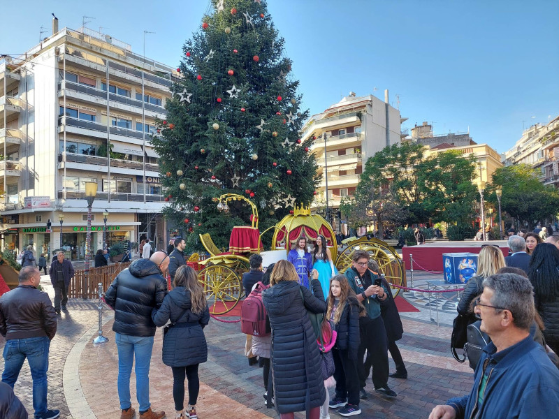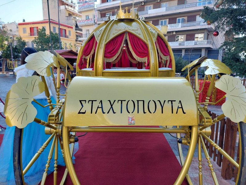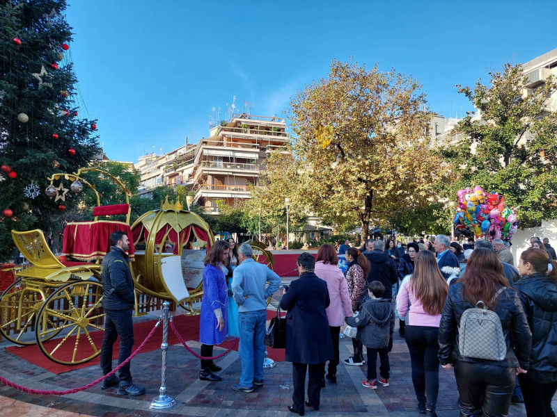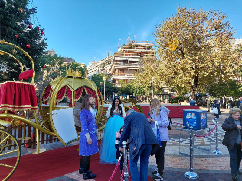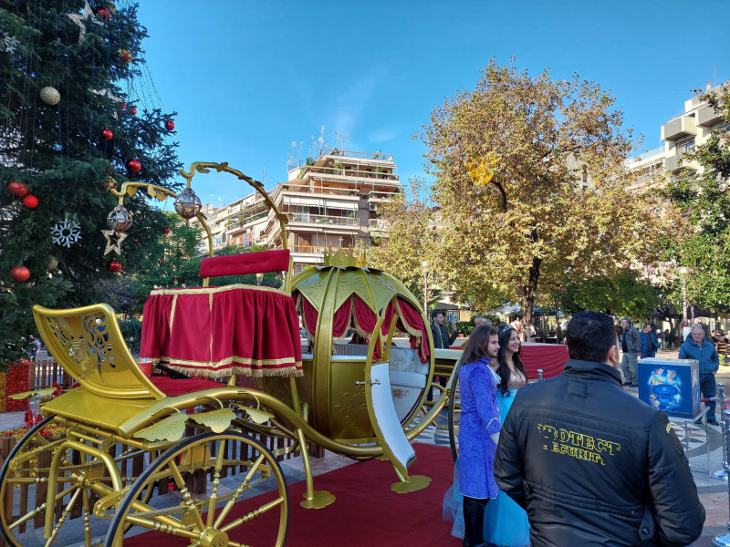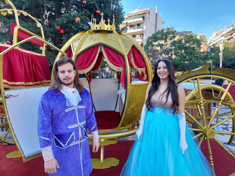 Στην Πλατεία Δημοκρατίας, δίπλα στο Xριστουγεννιάτικο Δένδρο, βρίσκεται από νωρίς το πρωί της Τρίτης, 27 Δεκεμβρίου 2022 η άμαξα της Σταχτοπούτας μαζί με έναν κουμπαρά για έναν σπουδαίο σκοπό.