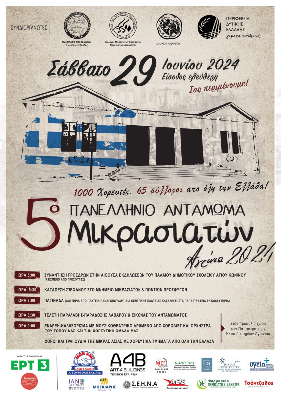 Το Αγρίνιο ετοιμάζεται να υποδεχτεί το 5ο Πανελλήνιο Αντάμωμα Μικρασιατών στις 29 Ιουνίου, ημέρα Σάββατο, στον προαύλιο χώρο των Παπαστρατείων Εκπαιδευτηρίων Αγρινίου.