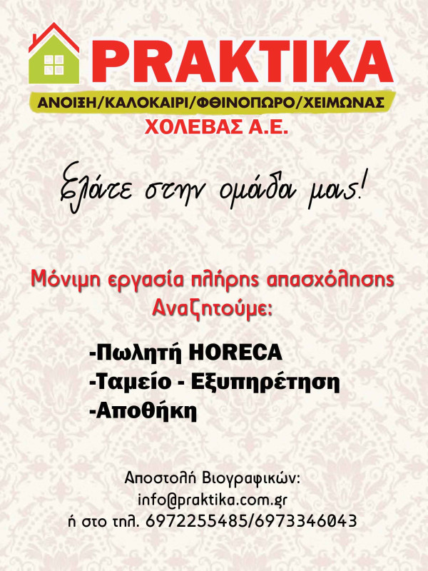 Αγρίνιο – Praktika «Χολέβας Α.Ε.»: Θέσεις εργασίας