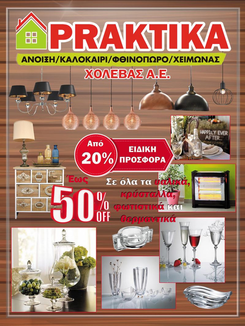 Από 20% έως 50% σε όλα τα υαλικά, κρύσταλλα, φωτιστικά και θερμαντικά!!!
