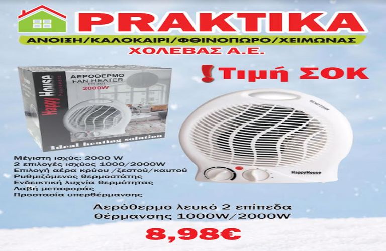 Μη χάσετε την προσφορά της εβδομάδας: Αερόθερμο 2000WATT μόνο 8,98 ευρώ