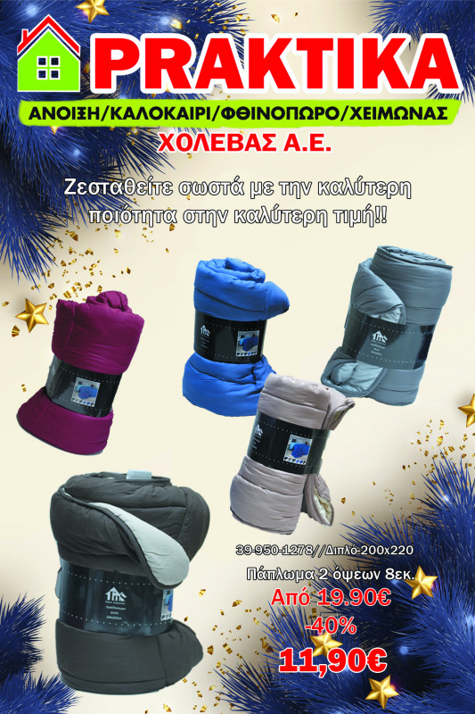 Στο κατάστημά μας θα βρείτε πάπλωμα διπλό 200*200 δύο όψεων μόνο 11,90!!