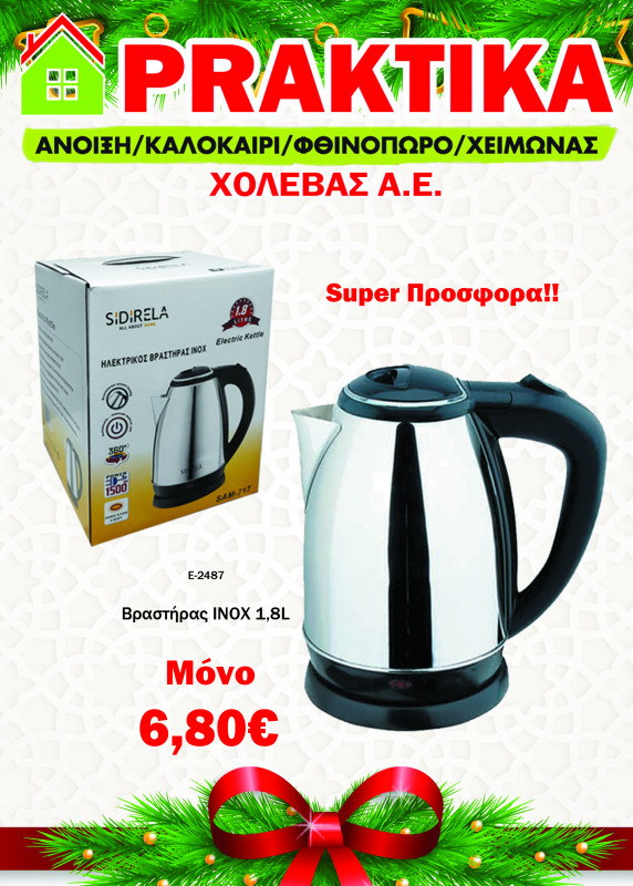 Προσφορά μέχρι τέλους τους έτους: Βραστήρας 1,8L inox μόνο 6,80 ευρώ!