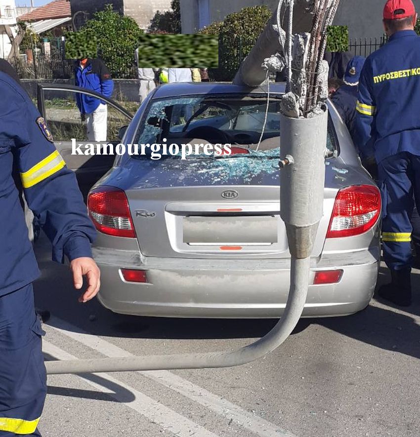 Από την σφοδρότητα της σύγκρουσης η κολόνα στην οποία κατέληξε το όχημα σχεδόν ξεριζώθηκε.