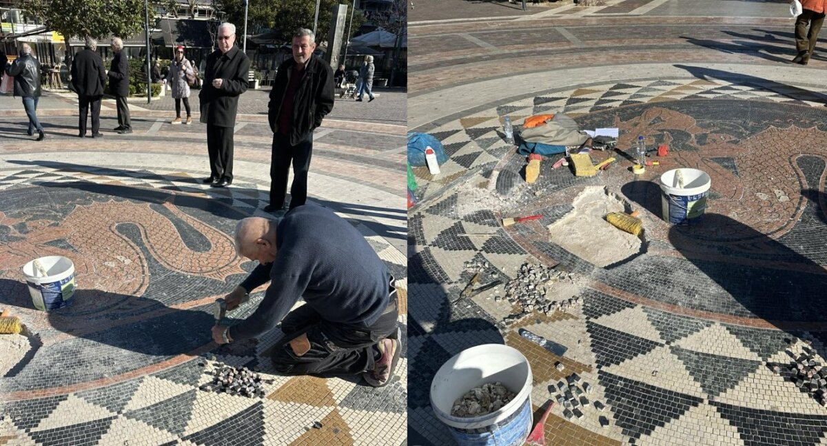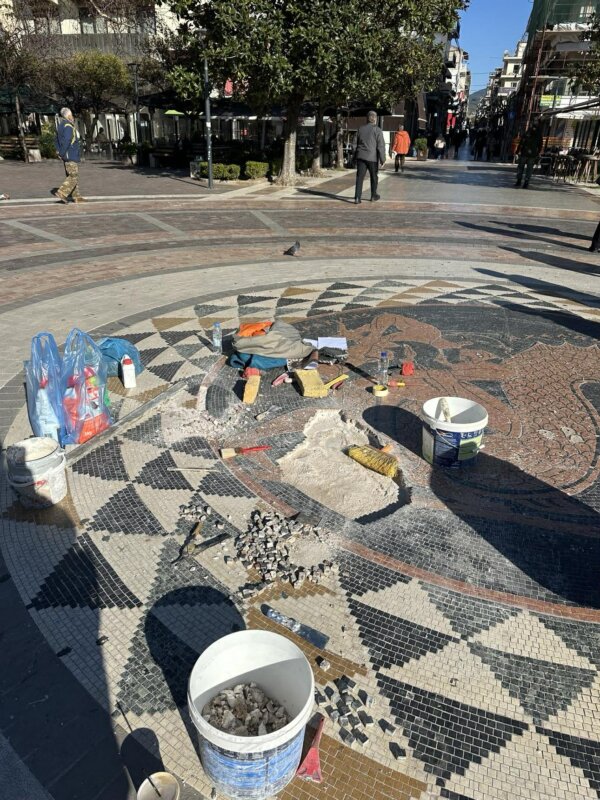 Αγρίνιο: Στην Πλατεία Δημοκρατίας άρχισαν οι εργασίες αποκατάστασης του ψηφιδωτού – Δηλώσεις Μπερμπερίδη