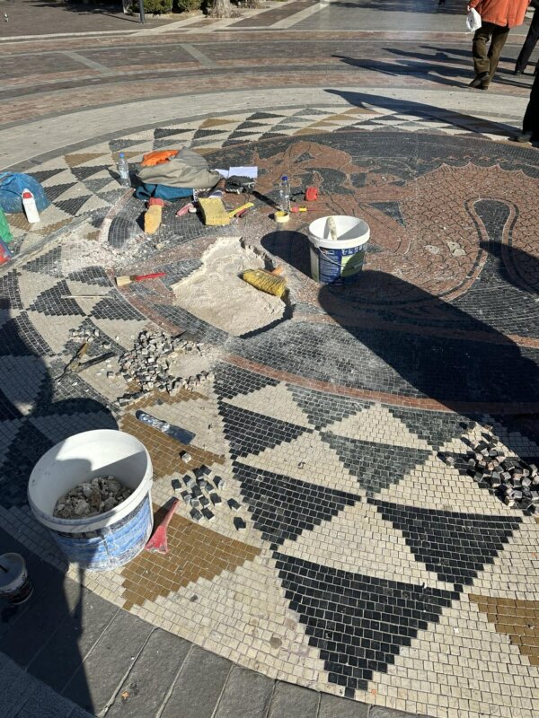 Στο Αγρίνιο οι πολίτες που περνούν από την Πλατεία Δημοκρατίας βλέπουν πως άρχισαν οι εργασίες αποκατάστασης του ψηφιδωτού – Δηλώσεις Μπερμερίδη στο AgrinioTimesTV.