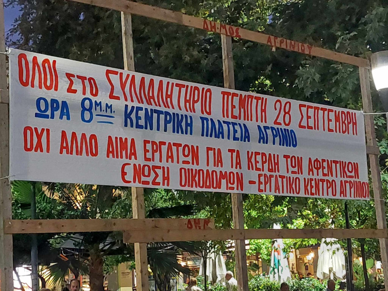 Στο Συλλαλητήριο συμμετείχαν εκπρόσωποι των Οικοδόμων Αιτωλοακαρνανίας καθώς και του Εργατοϋπαλληλικού Κέντρου Αγρινίου.