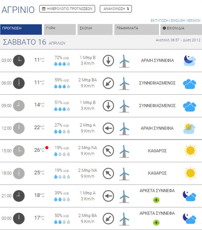 Πιο αναλυτικά, το Σάββατο, 16 Απριλίου 2022, αναμένεται γενικά νεφελώδης καιρός με μικρή πιθανότητα για τοπικές βροχές στα ηπειρωτικά. Από τις βραδινές ώρες αναμένονται βροχοπτώσεις κυρίως στα κεντρικά και βόρεια τμήματα.