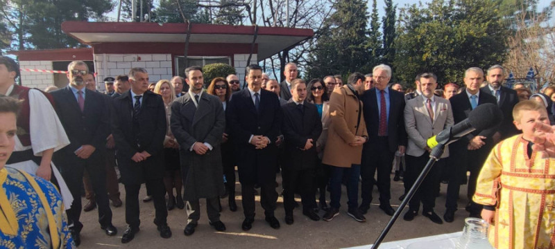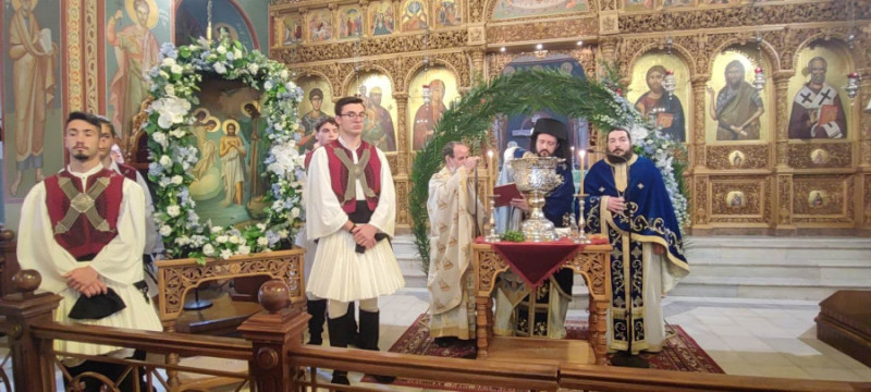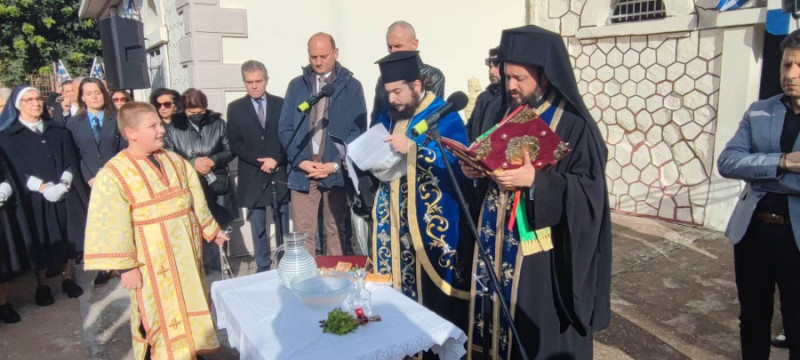Το πρωί νωρίτερα τελέστηκε Θεία Λειτουργία και Μέγας Αγιασμός στον Ι.Ν. του Αγίου Χριστοφόρου (Νέου) παρουσία πλήθους πιστών.