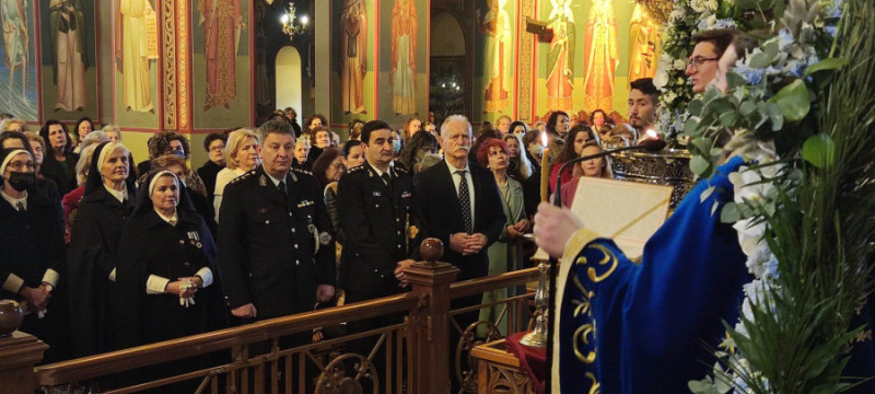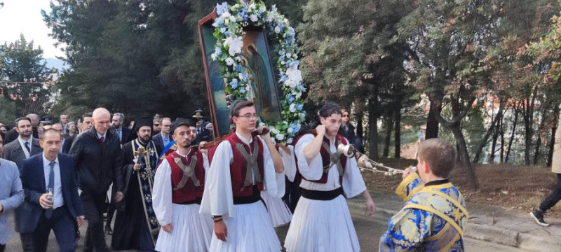 Την πομπή συνόδευσαν δεκάδες πιστοί, ενώ τιμές απέδωσε η Φιλαρμονική του Δήμου Αγρινίου.