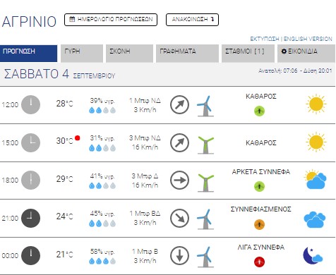 Πρόσκαιρες τοπικές βροχές αναμένονται στα δυτικά από το μεσημέρι του Σαββάτου 4 Σεπτεμβρίου 2021. Θερμοκρασία σε κανονικά για την εποχή επίπεδα. Άνεμοι έως 7 μποφόρ στο Νοτιοανατολικό Αιγαίο.