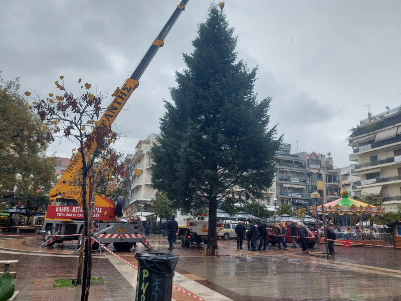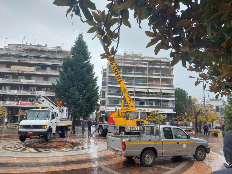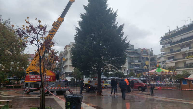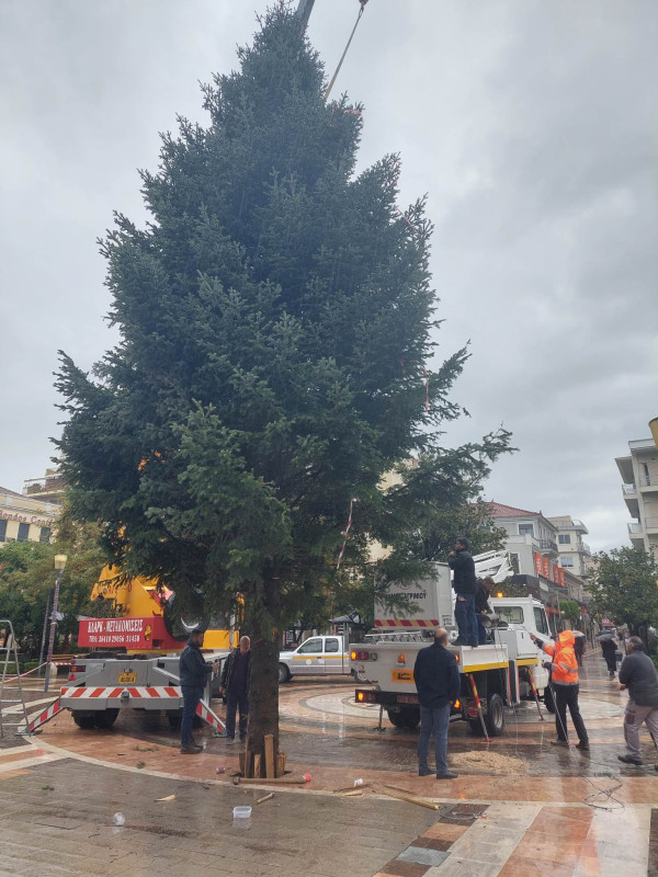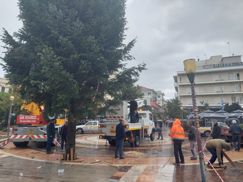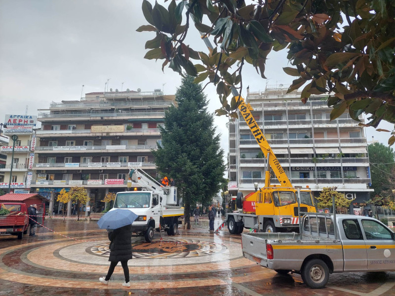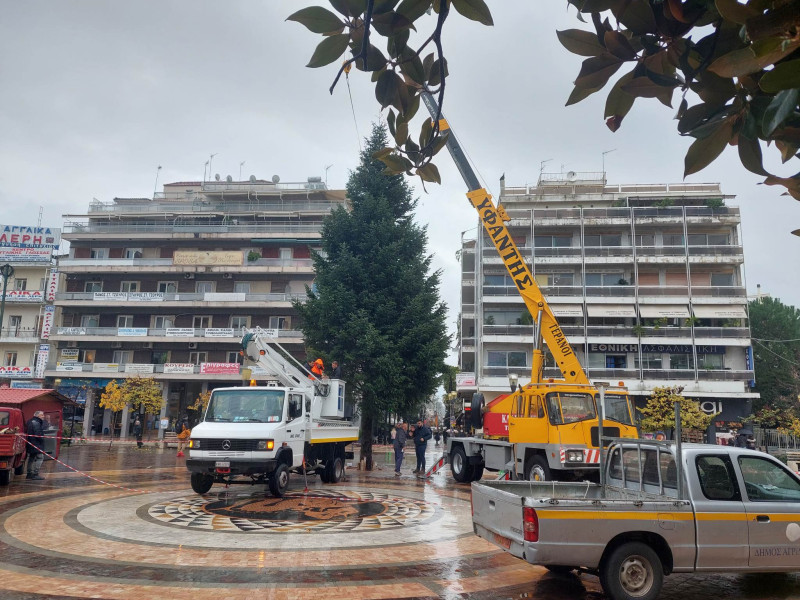 Αγρίνιο: Η τοποθέτηση του Χριστουγεννιάτικου Δέντρου στην Πλατεία Δημοκρατίας (Video – Photos)