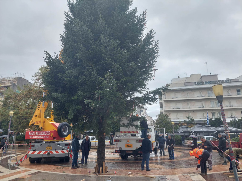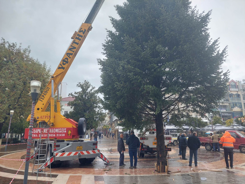 Οι εργασίες αναμένεται να ολοκληρωθούν μέχρι αύριο. Το Δέντρο είναι περίπου 15 μέτρα και πληροφορίες αναφέρουν πως προέρχεται από γειτονική πόλη.