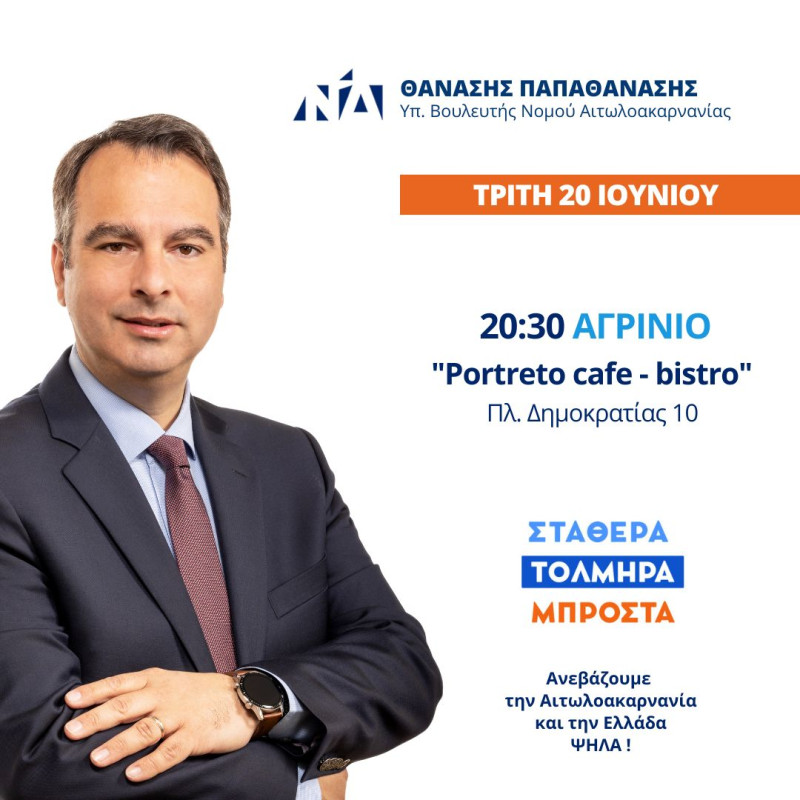 Πρόσκληση του Θανάση Παπαθανάση στη συνάντησή του με πολίτες στο Αγρίνιο.