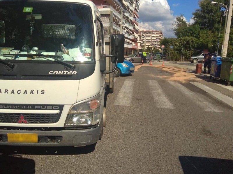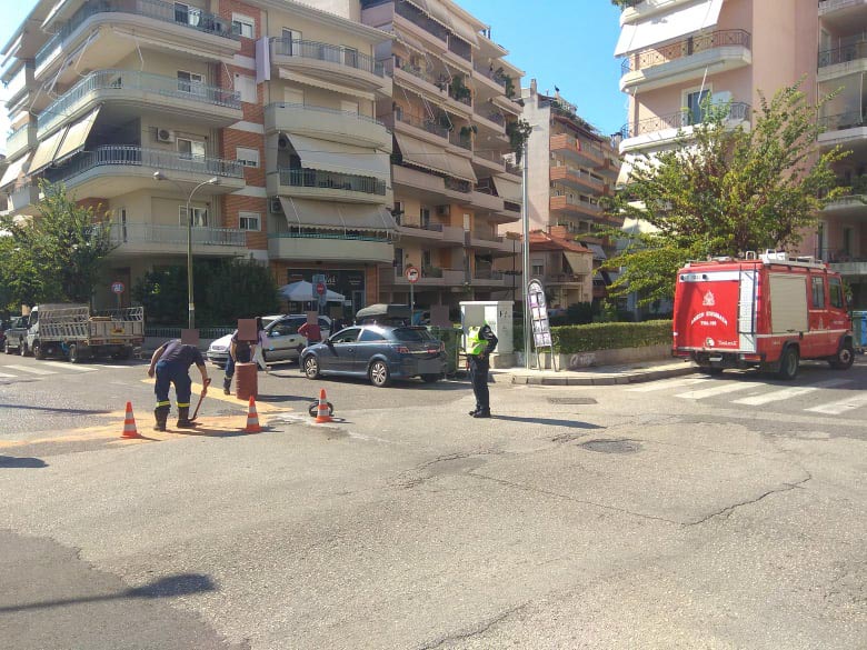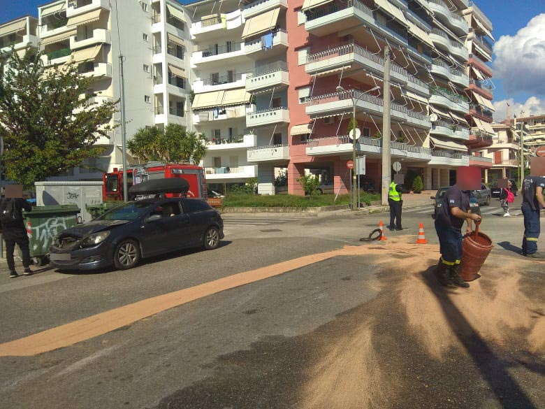 Στο σημείο χύθηκαν λάδια με αποτέλεσμα να κληθεί και η Πυροσβεστική για να ρίξει πριονίδι και η κυκλοφορία συνεχίζεται με την παρουσία τροχονόμου.