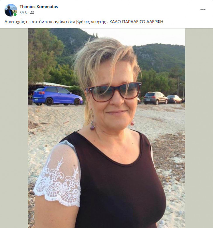 Η Σπυριδούλα Κομματά όπως λέει χαρακτηριστικά ο αδερφός της «δυστυχώς σε αυτόν τον αγώνα δε βγήκε νικητής. Καλό Παράδεισο Αδερφή» έδινε τη δική της «μάχη», όμως δε κατάφερε να βγει ζωντανή.