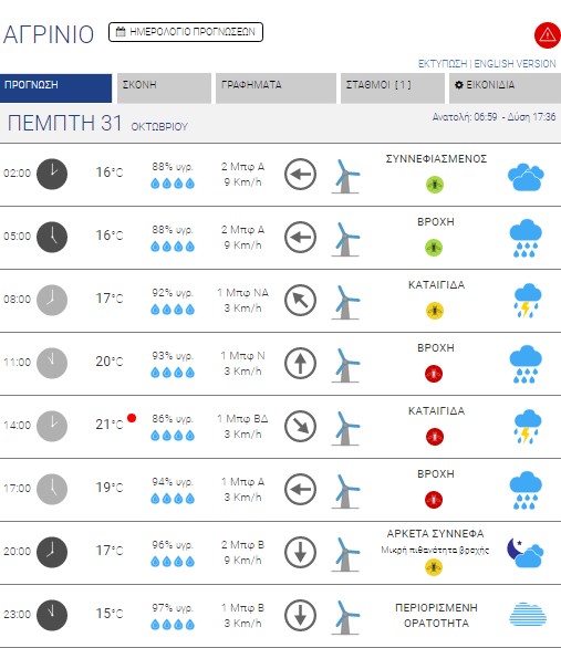 Αγρίνιο: Βροχές και καταιγίδες – Έως 21 βαθμούς κελσίου η θερμοκρασία