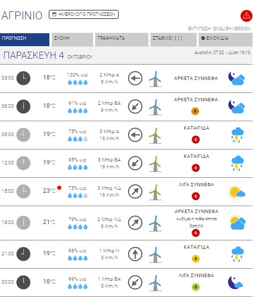 Αγρίνιο: Βροχές και καταιγίδες – Έως 23 βαθμούς κελσίου η θερμοκρασία