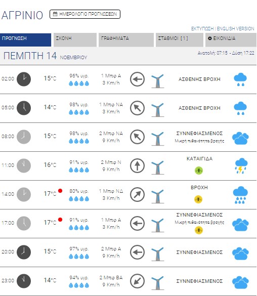 Αγρίνιο: Βροχές ή καταιγίδες με κατά τόπους ισχυρά φαινόμενα – Πτώση θερμοκρασίας