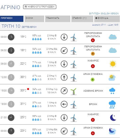 Αγρίνιο: Βροχή κατά τις απογευματινές ώρες – Έως 33 βαθμούς κελσίου η θερμοκρασία