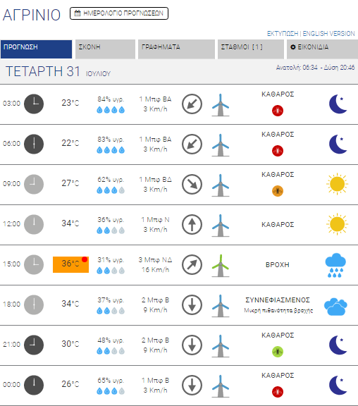 Αγρίνιο: Βροχή κατά τις μεσημεριανές ώρες – Έως 36 βαθμούς η θερμοκρασία