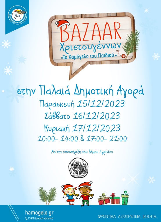 «Το Χαμόγελο του Παιδιού» σας προσκαλεί στα Χριστουγεννιάτικα Bazaars που διοργανώνει σε πολλές περιοχές της Ελλάδας.