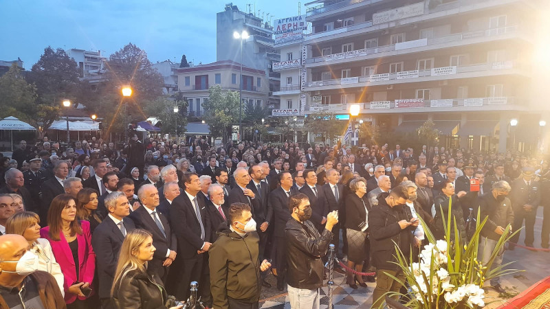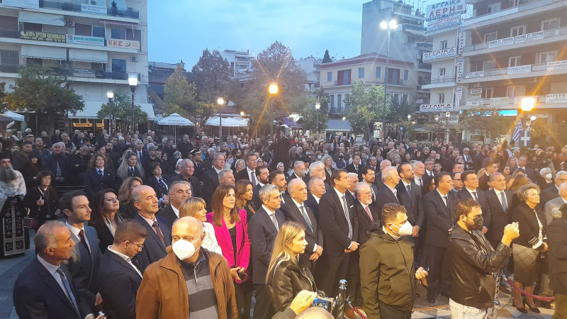 Στην Οδό Τσικνιά είχαν στοιχηθεί μαθητές Γυμνασίων και Λυκείων του Αγρινίου μαζί με μέλη παραδοσιακών συγκροτημάτων της πόλης.