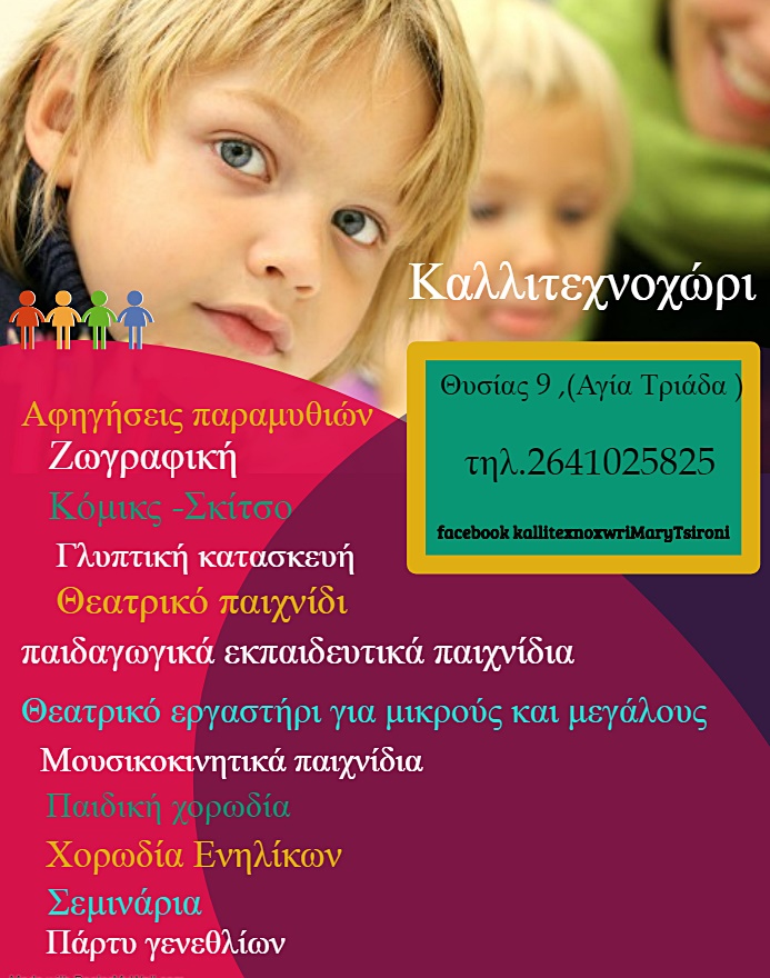 Άρχισαν οι εγγραφές στο Καλλιτεχνοχώρι, για την περίοδο 2019-2020, παρέχοντας την ευκαιρία σε μικρούς και μεγάλους να αξιοποιήσουν