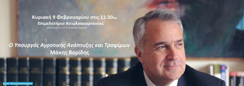 Στο Αγρίνιο,ο Υπουργός Αγροτικής Ανάπτυξης και Τροφίμων,Μάκης Βορίδης