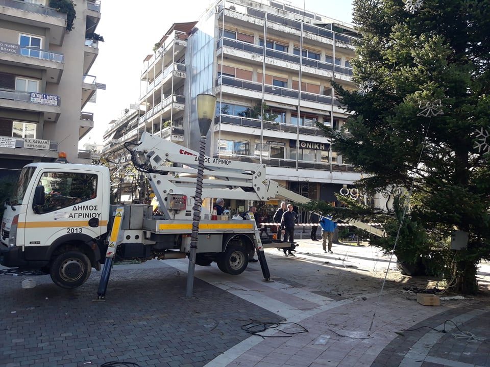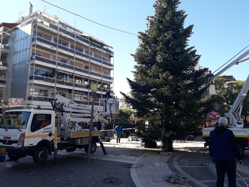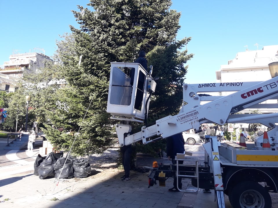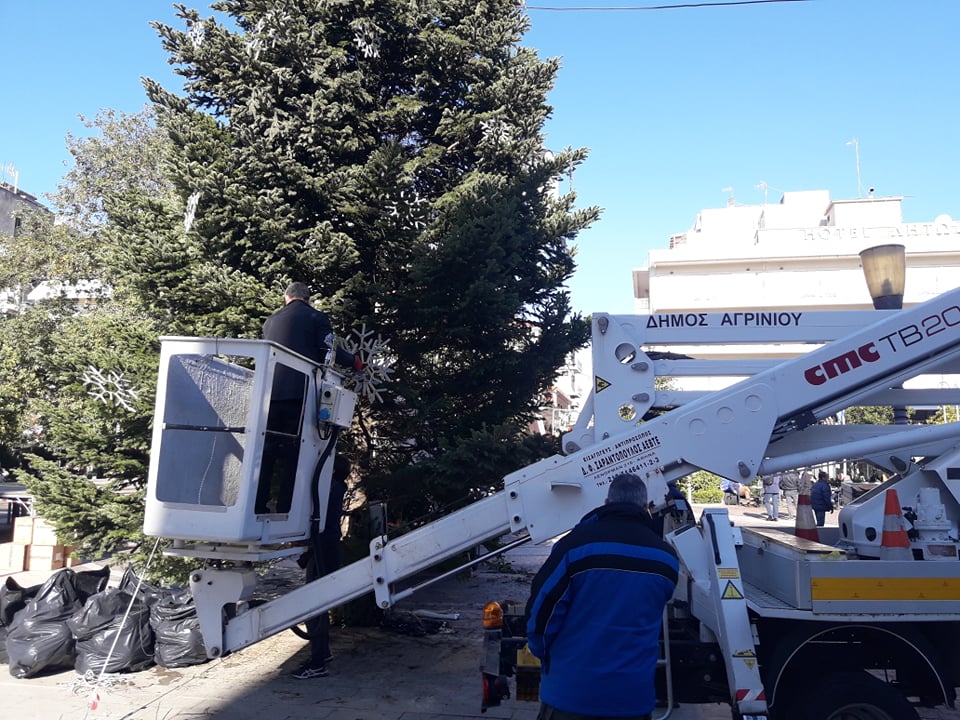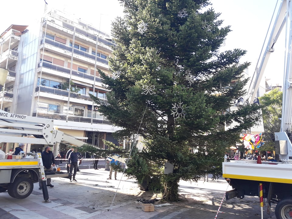 Από νωρίς το πρωί της Τετάρτης 8 Δεκεμβρίου 2021, στην Κεντρική Πλατεία Αγρινίου, έχουν ξεκινήσει οι εργασίες στολισμού του Χριστουγεννιάτικου Δέντρου από τους εργαζομένους του Δήμου Αγρινίου.