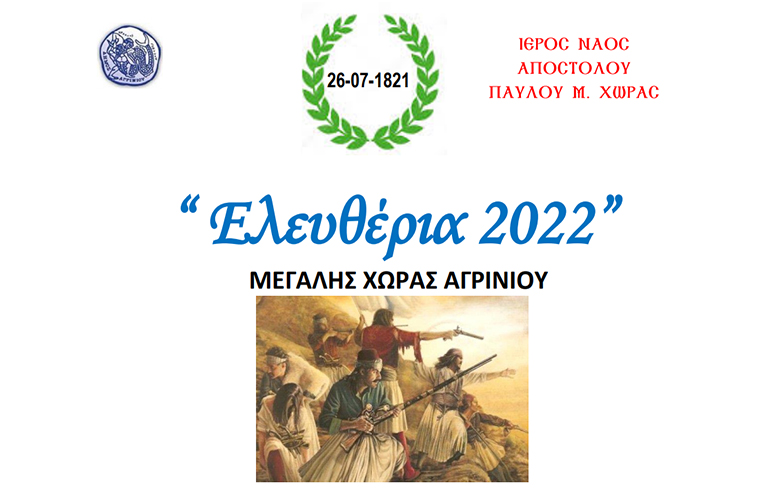 Την Τρίτη 26 Ιουλίου, εορτή της Αγίας Παρασκευής, θα τιμηθεί η επέτειος της απελευθέρωσης της Μεγάλης Χώρας από τον τουρκικό ζυγό.