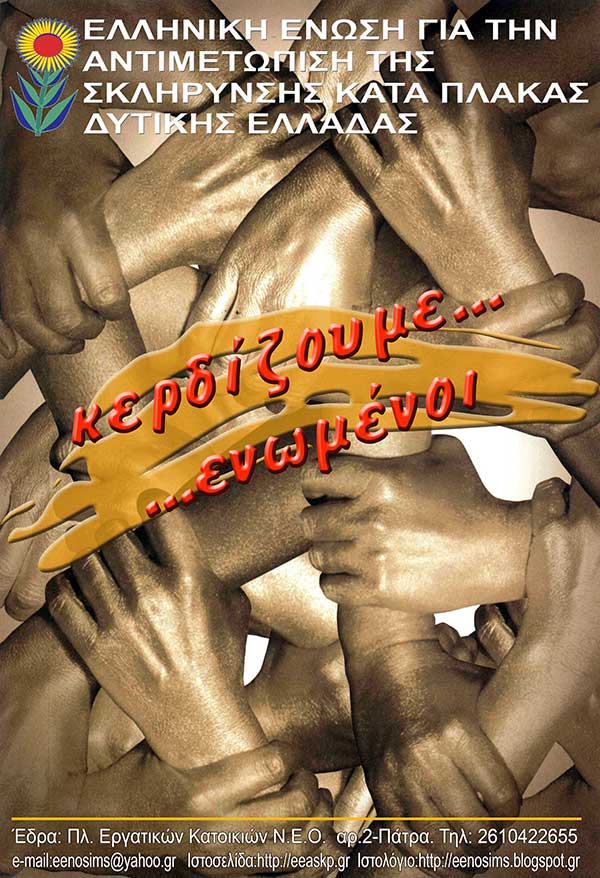 «Να σας ενημερώσουμε ότι το Σωματείο μας ιδρύθηκε το 1992, αριθμεί περί τα 450 μέλη-ασθενείς με Πολλαπλή Σκλήρυνση και 150 φίλους-εθελοντές, έχει έδρα την Πάτρα και καλύπτει γεωγραφικά την Περιφέρεια Δυτικής Ελλάδας με γραφεία συντονισμού και υποστήριξης των μελών του και στις πόλεις του Αγρινίου, Πύργου και Αιγιαλείας.