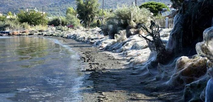 Για τους κατοίκους του Αιτωλικού, της μικρής κωμόπολης που βρίσκεται σε ένα νησί στη λιμνοθάλασσα του Μεσολογγίου, το θέαμα ήταν πρωτόγνωρο. Ένα μεγάλο μέρος της παραλιακής βλάστησης, από τα αγριόχορτα μέχρι τα δένδρα ήταν καλυμμένο με ένα τεράστιο αραχνοΰφαντο πέπλο, δημιουργώντας ένα απόκοσμο σκηνικό.