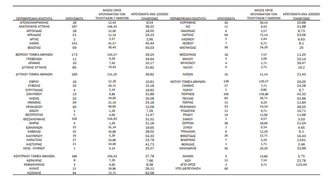 Η κατανομή των 3.065 νέων εγχώριων κρουσμάτων ανά Περιφερειακή Ενότητα παρουσιάζεται στον κατωτέρω πίνακα.