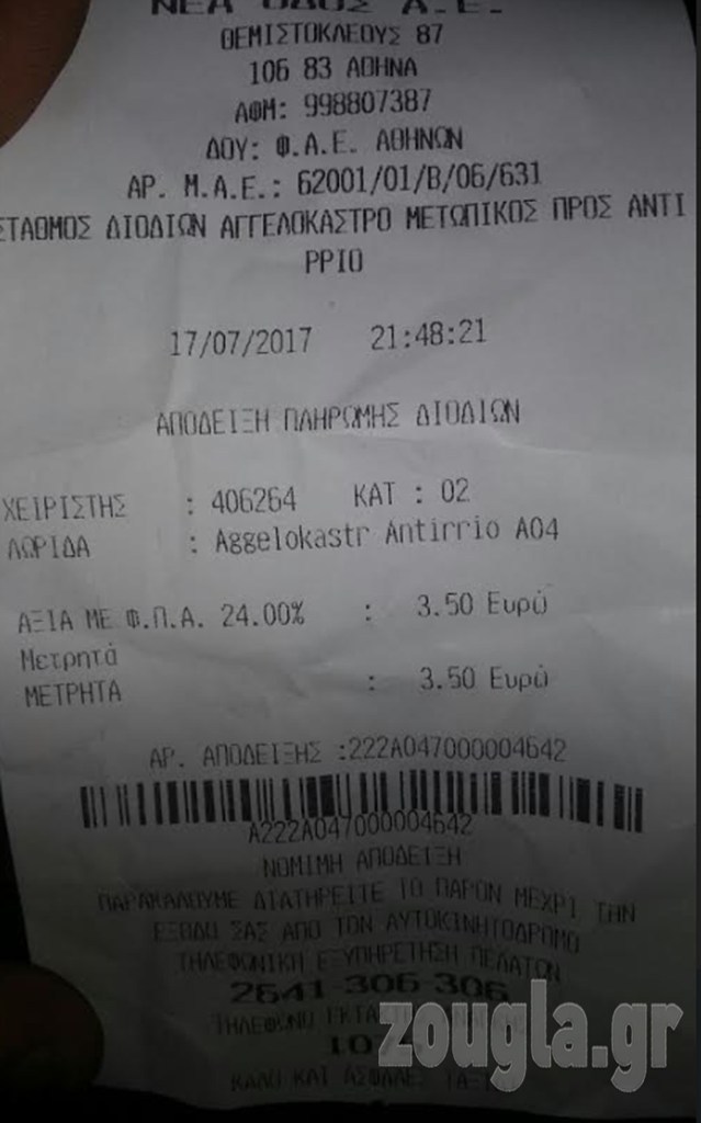 Με το zougla.gr επικοινώνησε αναγνώστης ο οποίος τόνισε πως πλήρωσε -αδίκως- 3,50 ευρώ στα διόδια στον κόμβο Αγγελοκάστρου της Ιόνιας Οδού, ενώ στην ουσία ο δρόμος δεν χρησιμοποιείται, προσωρινά, λόγω εργασιών. Τα οχήματα ανακατευθύνονται από την τροχαία μέσω παρακαμπτήριων οδών.