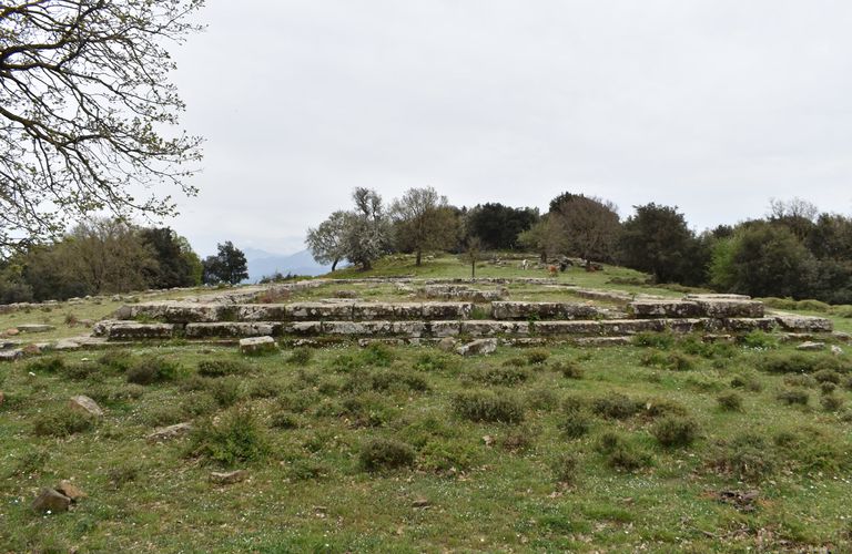 «Πολύ σπουδαιότερα κτίρια της ακροπόλεως – ναός και στοά – ευρίσκονται εις το χαμηλότερον, το βορειοδυτικόν επίπεδον αυτής και δη εις το άκρον της περιοχής, ούτως ώστε να σχηματίζεται προ του ναού η αναγκαία πλατεία προς τοποθέτησιν των βωμών και των αναθημάτων.
