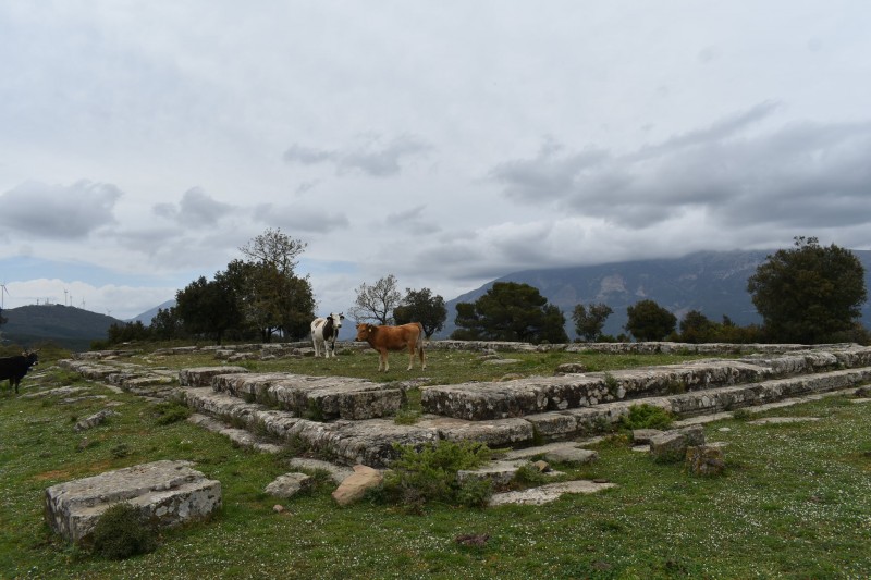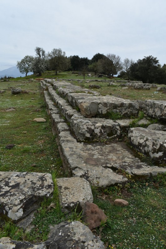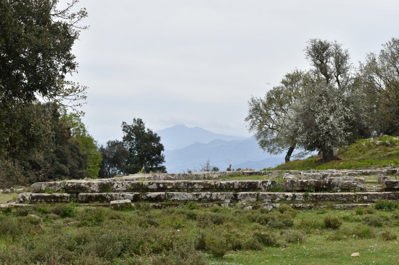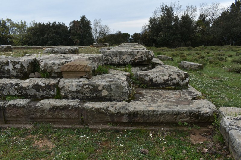 «Πολύ σπουδαιότερα κτίρια της ακροπόλεως – ναός και στοά – ευρίσκονται εις το χαμηλότερον, το βορειοδυτικόν επίπεδον αυτής και δη εις το άκρον της περιοχής, ούτως ώστε να σχηματίζεται προ του ναού η αναγκαία πλατεία προς τοποθέτησιν των βωμών και των αναθημάτων.