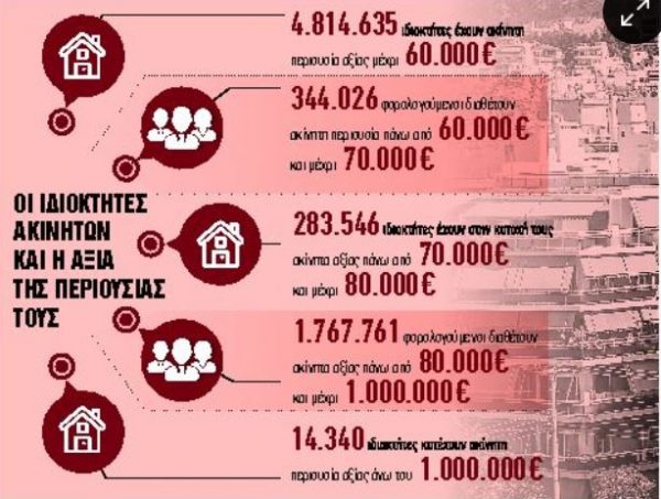 - 10% για αξία ακίνητης περιουσίας άνω του 1.000.000 ευρώ.