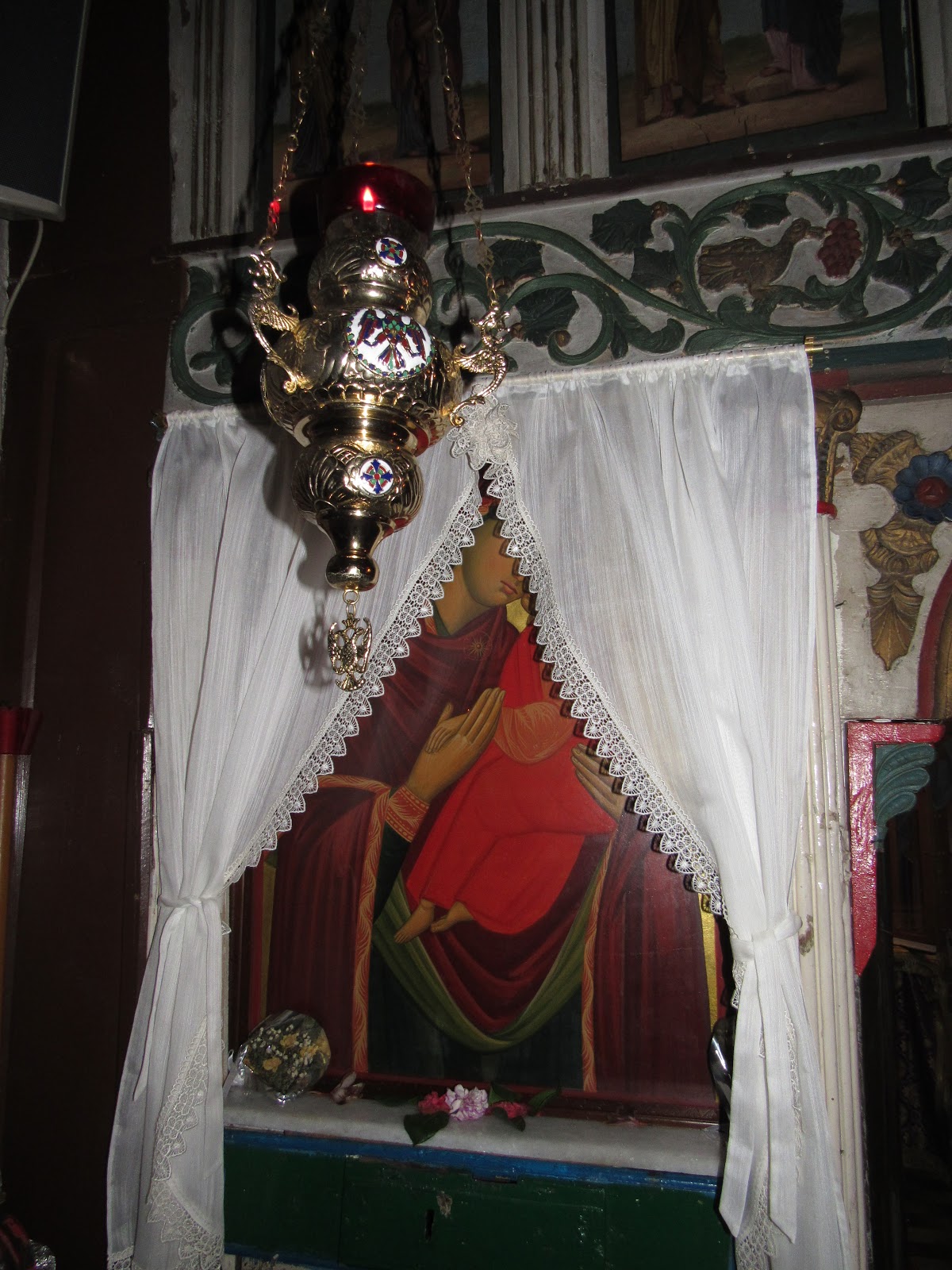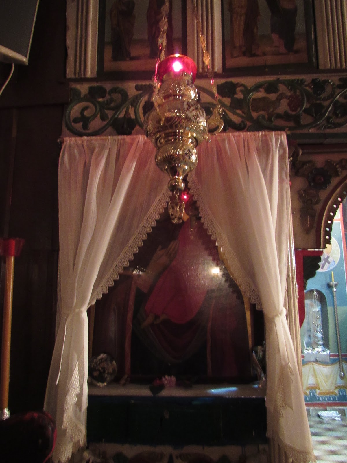 Οι εικόνες των Αγίων, δε, βρέθηκαν από τον Μπάρμπα-Χαράλαμπο, φύλακα και εφημέριο του μοναστηριού,που ήταν κυνηγός και είδε σε όραμα μια μαυροντυμένη εκδοχή της Παναγίας να του υποδεικνύει το μέρος όπου θα έβρισκε τα λείψανα. Αυτό έγινε με μεγάλη λεπτομέρεια στο σημείο που θα άκουγε ένα χτύπο από το αυτοκίνητο με το οποίο θα πήγαινε για κυνήγι την επόμενη! Κάτι που συνέβη και το παρατήρησε μόνο ο ίδιος, ανακαλώντας το όραμα που είχε δει, για να βρει, αφού έσκαψε, αρχικά ένα μικρό μεταλλικό κάλυμμα κάτω από ένα άλλο ξύλινο και στη συνέχεια το θησαυρό της Μονής.