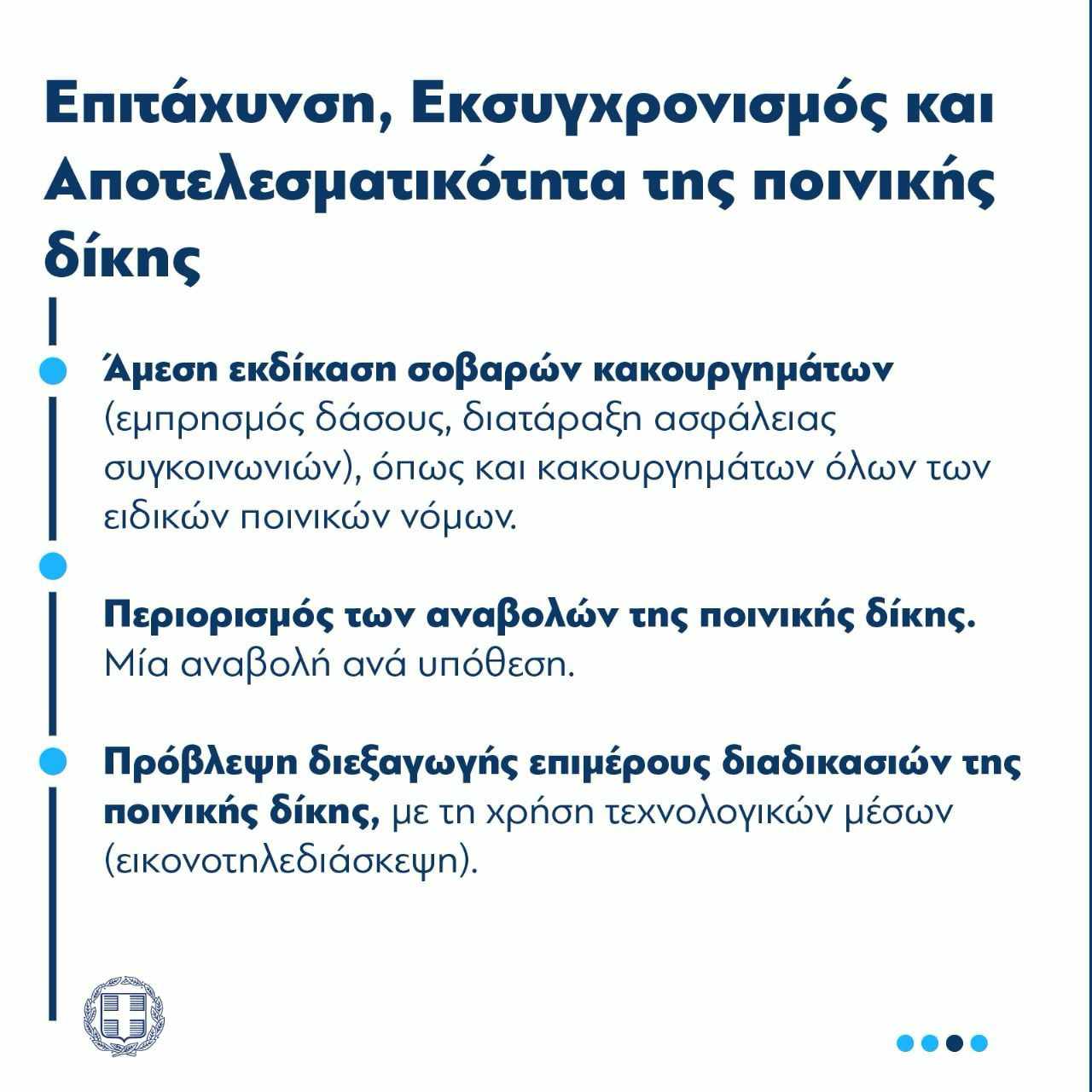 • Περιορισμός των αναβολών της ποινικής δίκης που χορηγεί το δικαστήριο, ανεξαρτήτως αιτίας, σε μία αναβολή ανά υπόθεση.