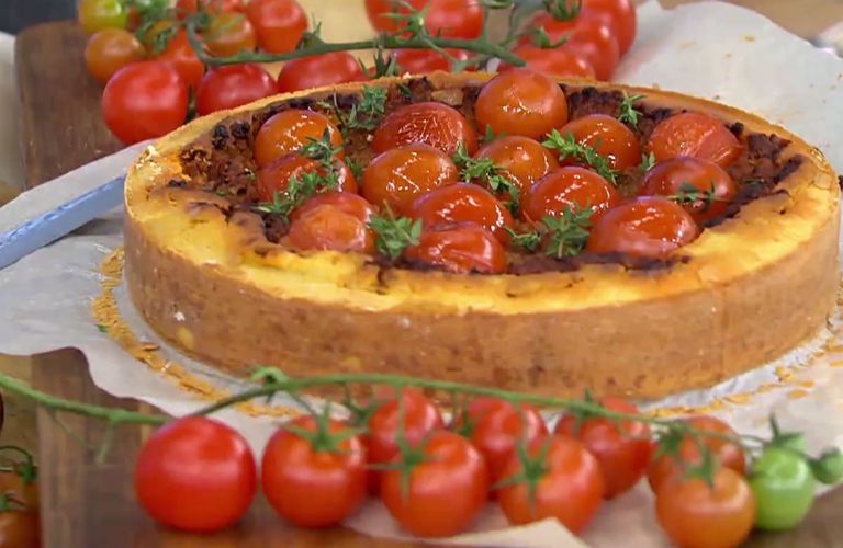 Αλμυρό κέικ με κιμά και ντοματίνια
