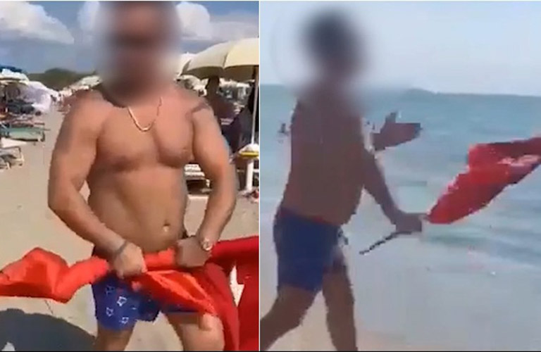 Συνελήφθη 48χρονος Αλβανός επειδή αφαίρεσε τη σημαία της Τουρκίας από παρατηρητήριο ναυαγοσωστών σε παραλία του Δυρραχίου, στην Αλβανία (φωτογραφία, επάνω, από βίντεο).