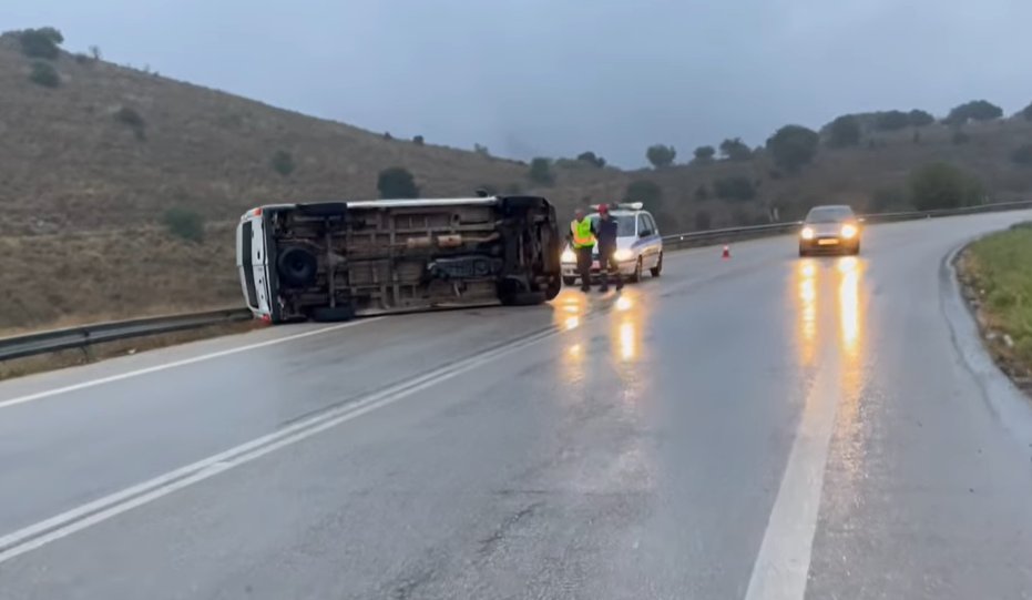 Στο 1ο χιλιόμετρο της Εθνικής Οδού Αμφιλοχίας – Αγρινίου ένα βαν ιδιωτικής χρήσης που κατευθυνόταν προς την πόλη της Αμφιλοχίας εξετράπη της πορείας του σε αριστερή στροφή και ανετράπη στο οδόστρωμα.