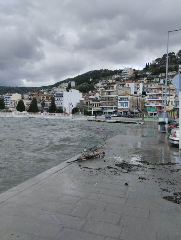 Ο έντονος βοριάς προκάλεσε ισχυρό κυματισμό, με αποτέλεσμα τα κύματα να ξεπεράσουν το παραλιακό μέτωπο και να φτάσουν σε σημεία της πόλης.