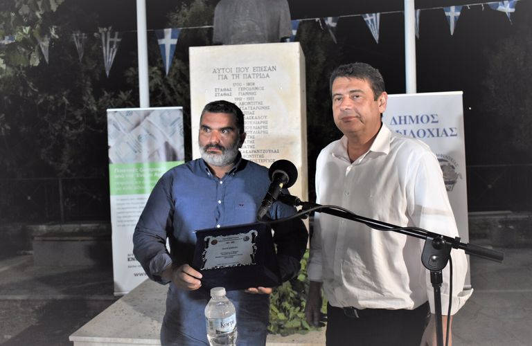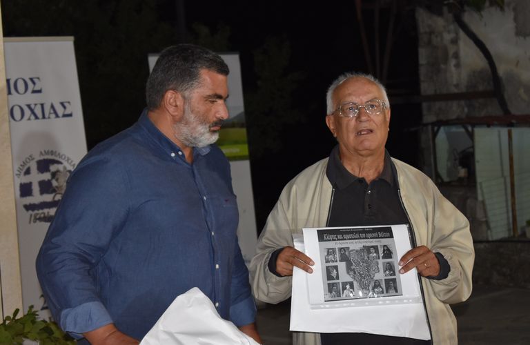 Η εκδήλωση ολοκληρώθηκε με την απονομή τιμητικής αναμνηστικής πλακέτας στον κ. Σταθά, την οποία παρέδωσε ο Δήμαρχος Αμφιλοχίας Γιώργος Κατσούλας.